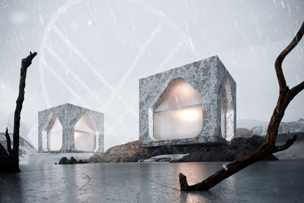 The "Kyrgyzstan 2122" concept imagines yurts made in concrete, with frosted glass windows and come in two levels.