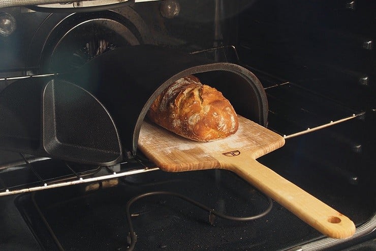 The Fourneau fits on the oven racks and is pre-heated there. You can then slide your bread dough into the end using the solid maple peel that comes with the oven. In case you haven’t figure it out, the peel also makes removal of the finished baked goods easy & safe! As an innovative way to integrate old technology into the modern age, this clever addition to your kitchen offers a lifetime’s service to better eating. Recipe guide included.
