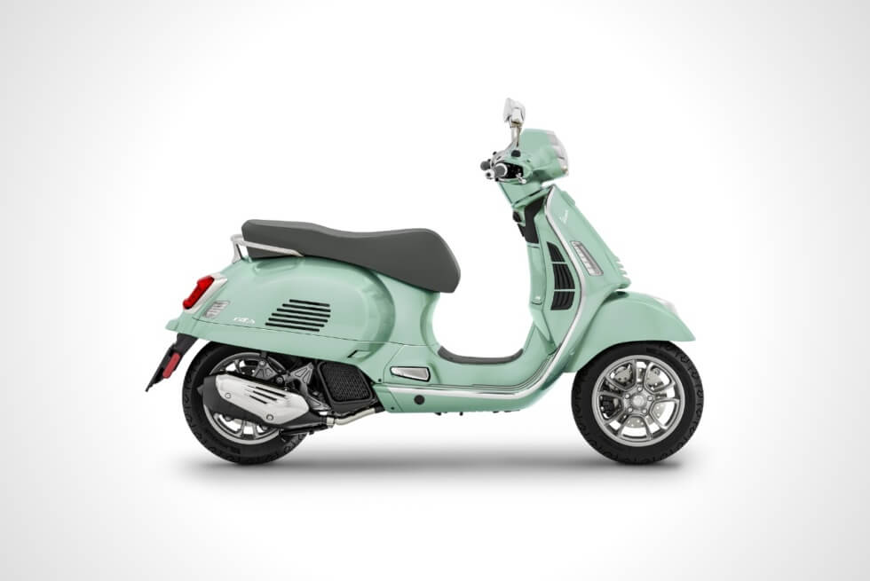 The Vespa GTS is available in Nero Convinto (black) and Verde Amabile (mint) with both colorways sporting chrome embellishments.