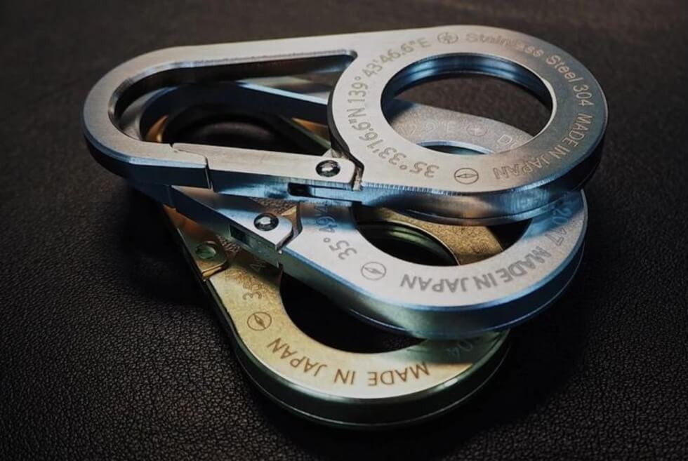 Saegusa Design's AirTag Carabiner is lightweight and comes in three metal constructions: stainless steel, brass, and Duralumin.